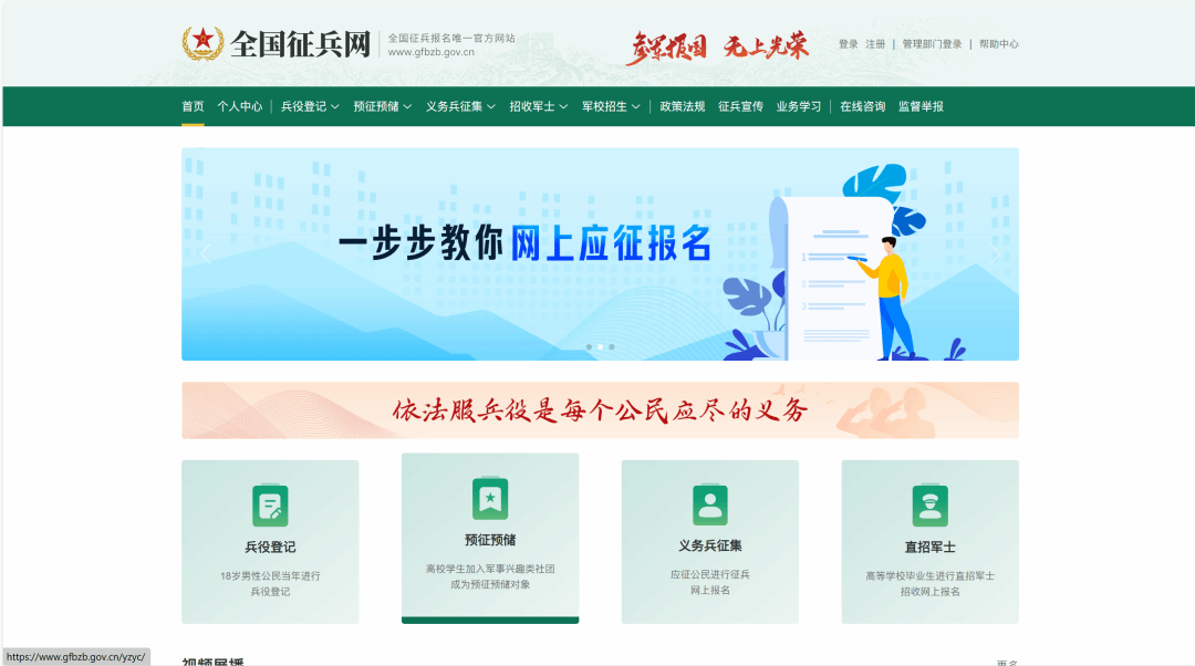 有意向参军的同学可登陆全国征兵网